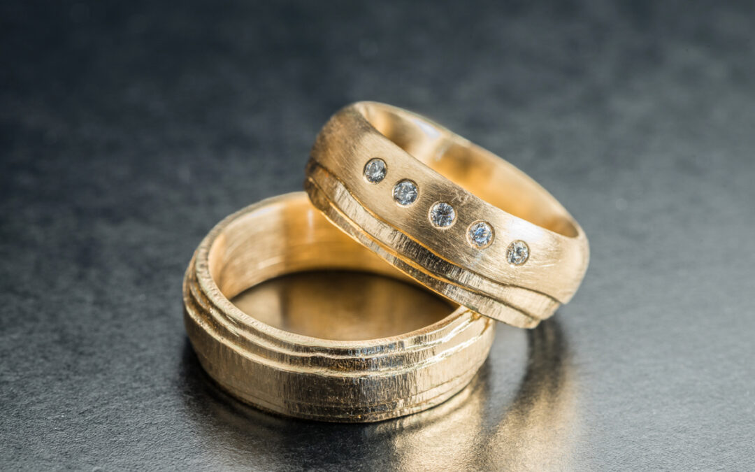 Eheringe: Roségold mit Diamanten, abgestuft und mattiert
